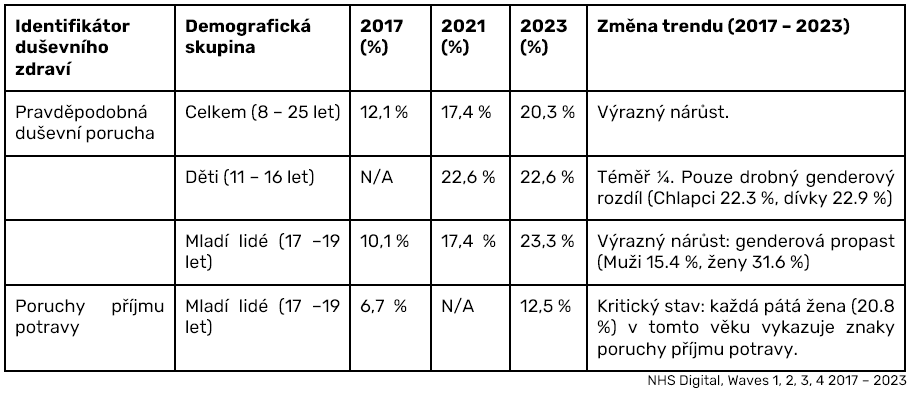 https://www.cdc.gov/yrbs/results/2023-yrbs-results.html ↩︎ - NHS Digital, Mental Health of Children and Young People in England, dostupné z: