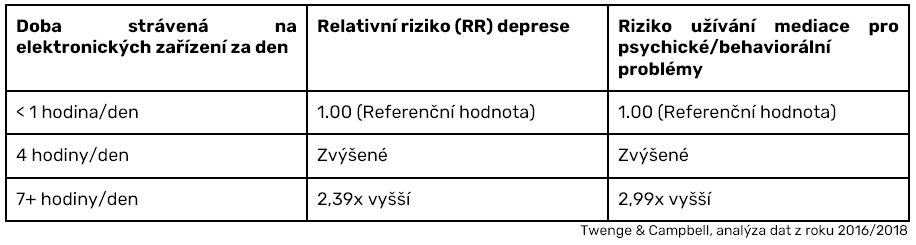 1. 2. 4. Riziko duševních poruch dle času na obrazovce